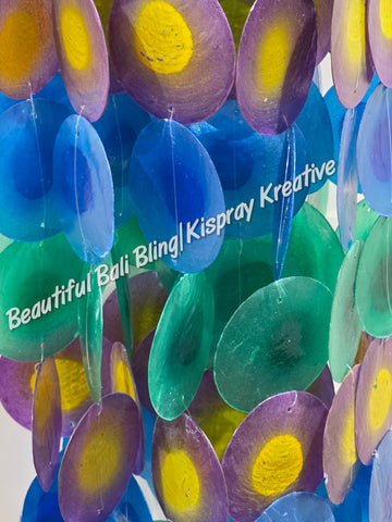 Capiz shell wind chime blue rattan circle 67 cm drop x 11 cm wide approx #0038