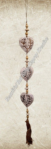 Beachy Hamptons Driftwood Wood dangle heart white approx 10cm x 90 cm #0052